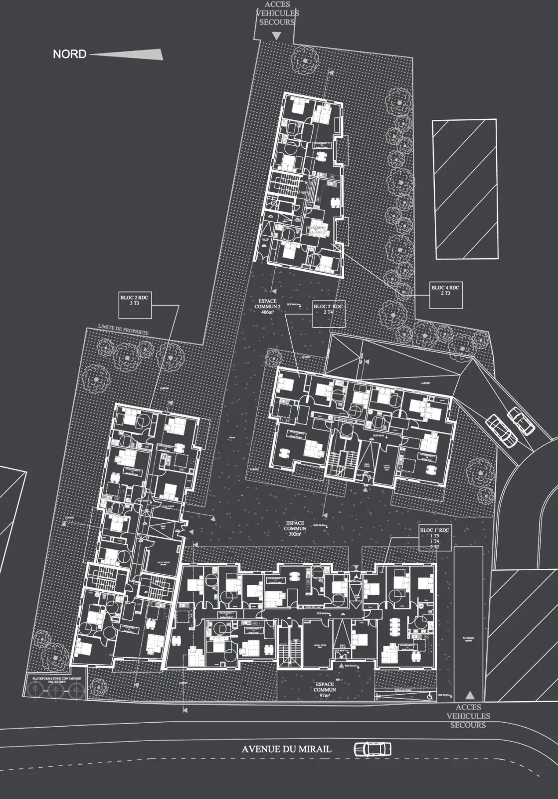 L'agence MARTINS ARCHITECTURE a réalisé la conception du projet, les plans permis de construire, les plans de vente, les plans détaillés de la consultation des entreprises, mais elle ne gère pas le suivi de chantier sur cette opération de TAGERIM. Le projet est composé de 4 immeubles représentant un total de 42 logements reliés par un parking souterrain.