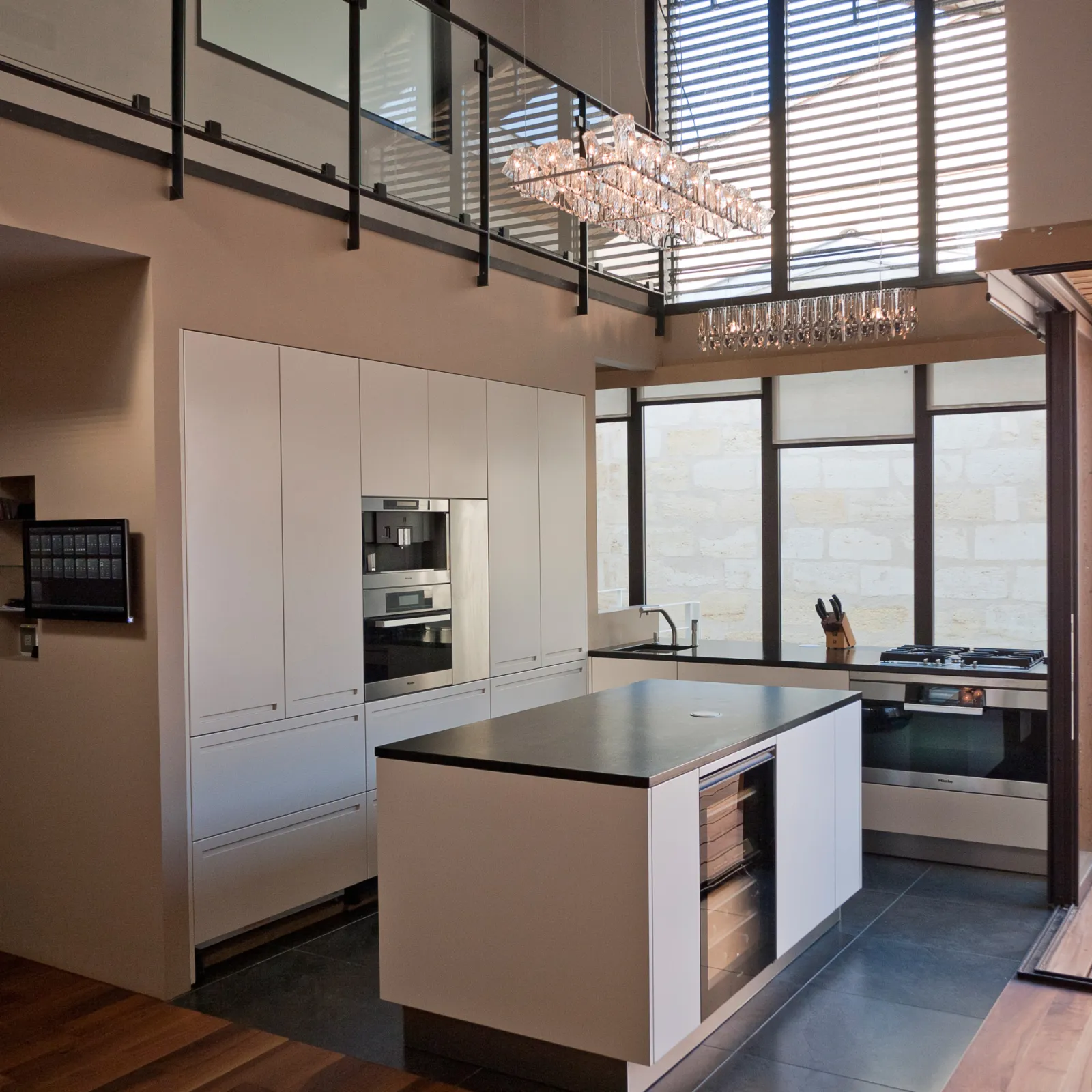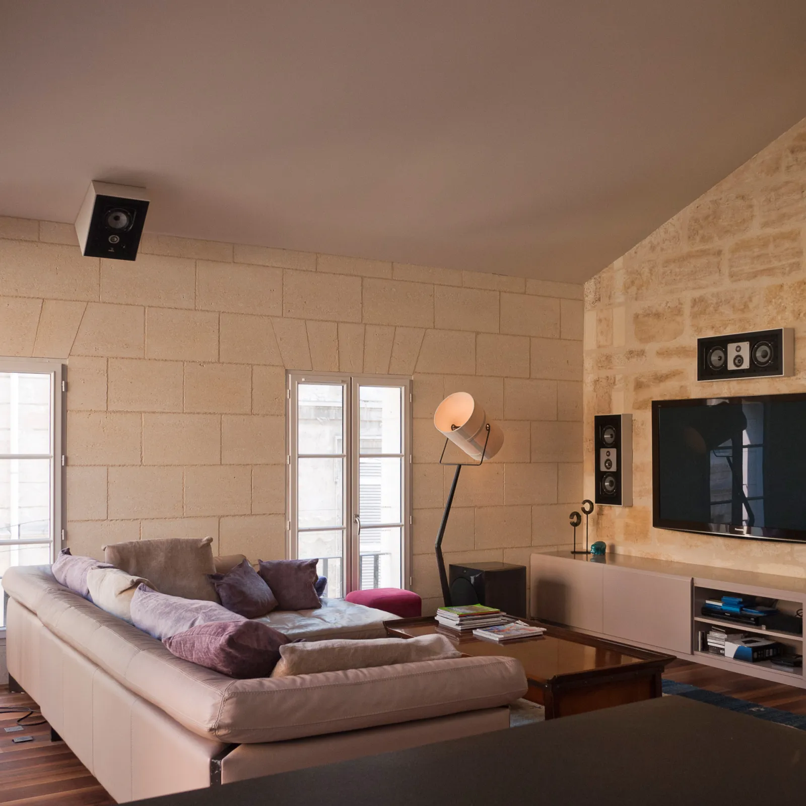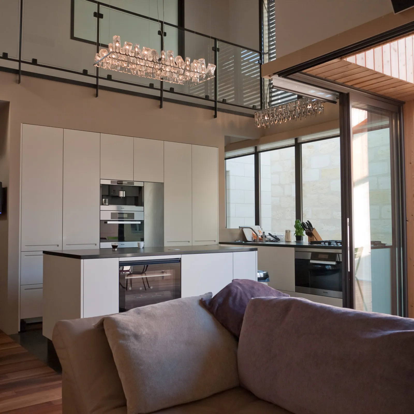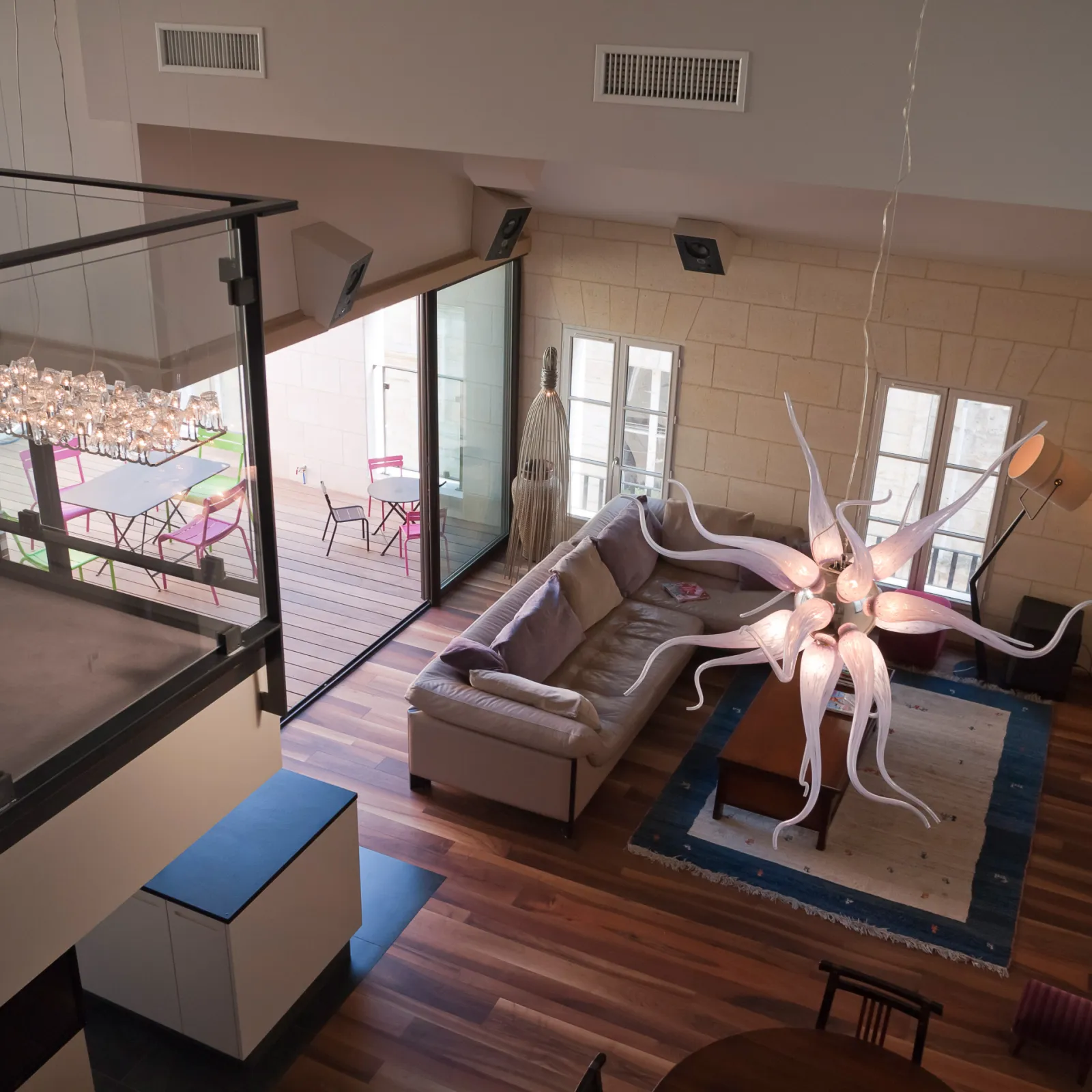 Le projet à nécessité des fondations profondes, des nouveaux planchers béton, un escalier et passerelle métallique et un placage pierre sur la façade sur rue. Une terrasse a été aménagée au R+2
