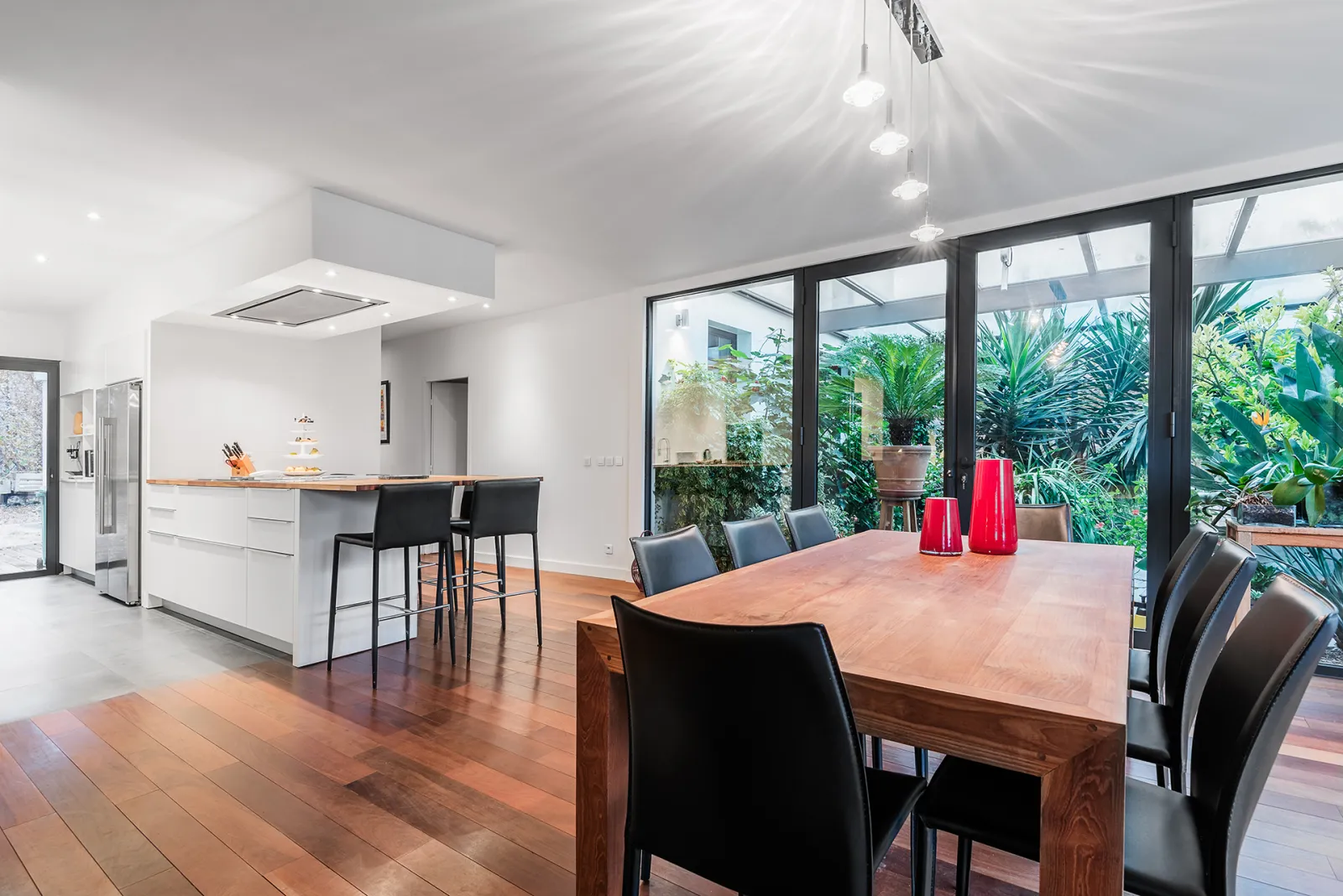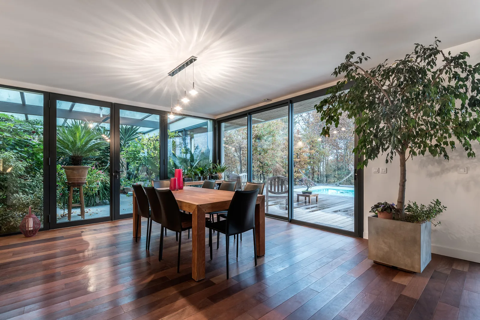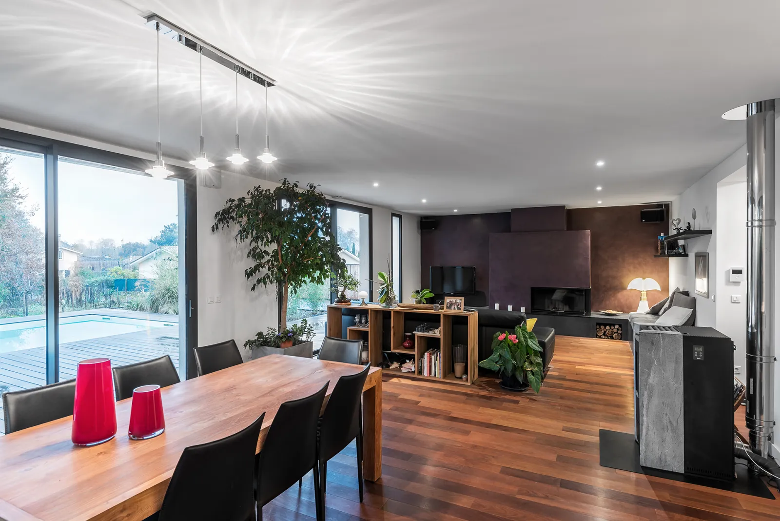 Ce système permet ainsi de conserver tous les avantages du principe cosntructif de l'ossature bois : moins de nuisance pendant le chantier, moins de dépense de matière grise, préparation maximale en atelier, utilisation de matériaux plus écologiques, délais de construction racourcis, précision du montage, meilleure isolation thermique et phonique, qualité de l'air intérieur.... le tout avec un aspect extérieur très contemporain et sans contrainte de l'entretien du bois.