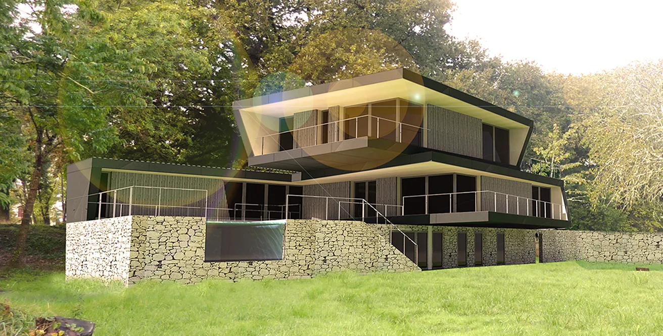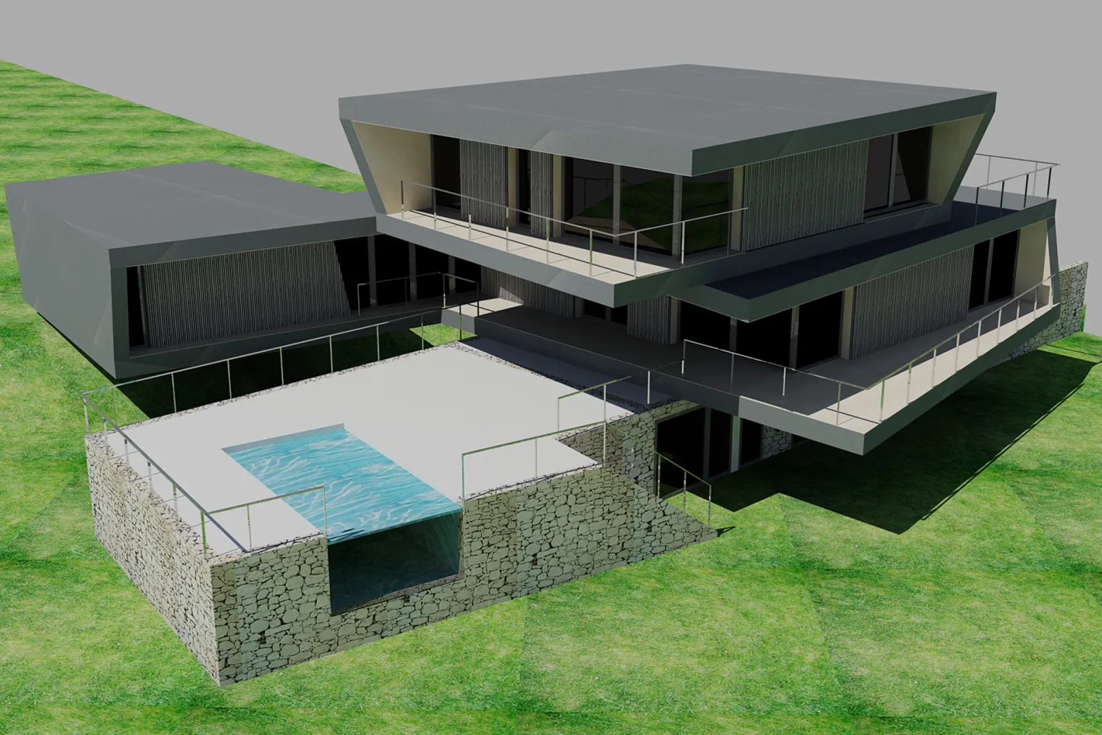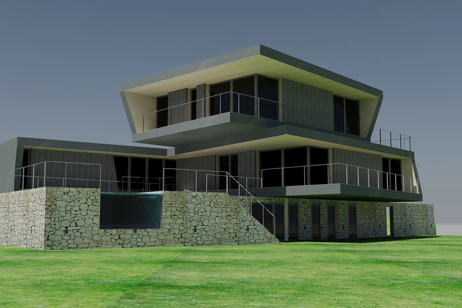 Un projet de maison individuelle non réalisé. L'écriture architecturale de ce projet prévoyait 3 strates différentes légèrement décalées par niveaux. Le RDC était traité de façon minérale correspondant au socle de la maison. Les deux autres strates étaient traitées de façon plus légères avec des débords et des portes à faux.