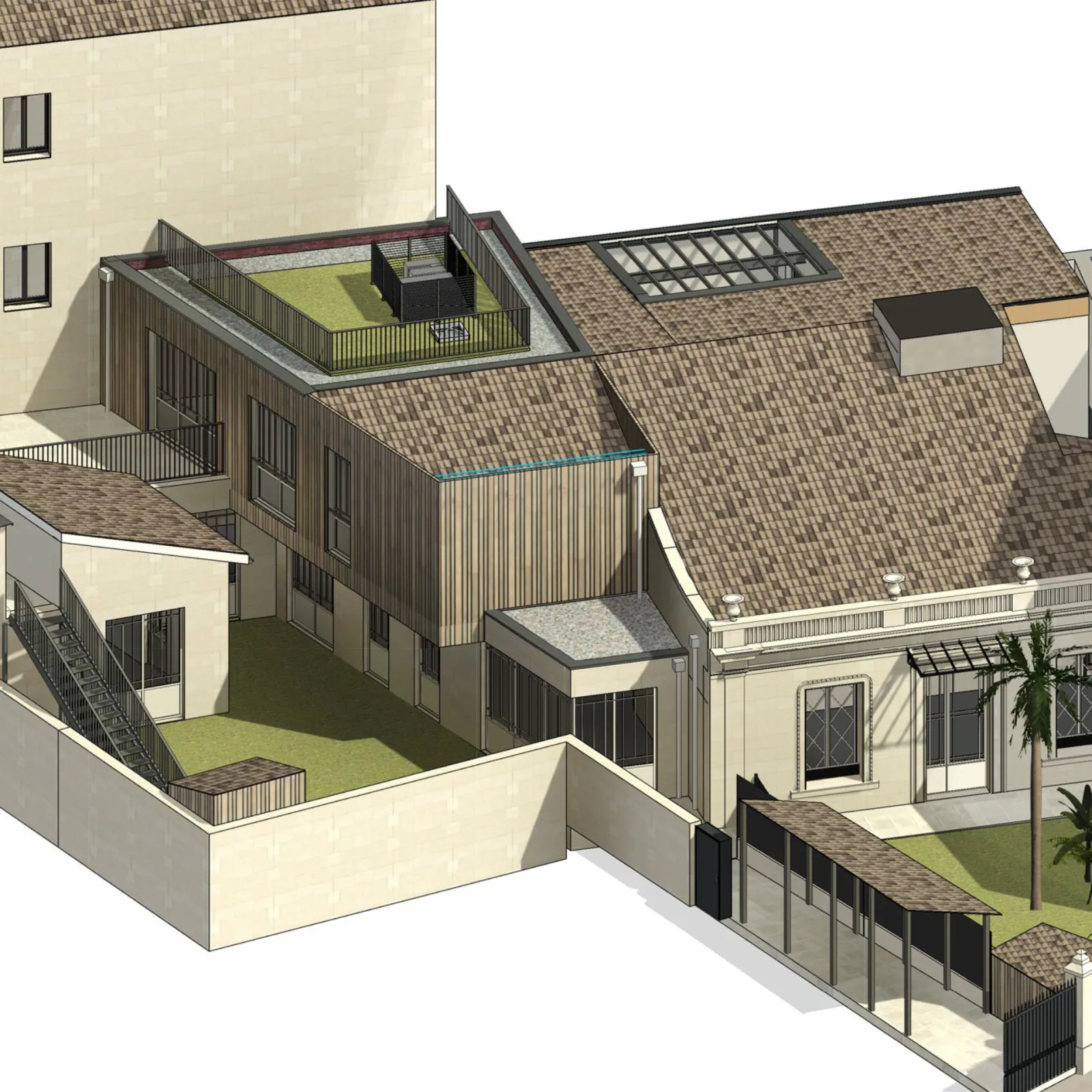 Rénovation, surélévation et extension d’un bâtiment existant pour la création d’une crèche à Bordeaux. Nous ne réaliserons sur ce projet que les travaux relatifs au hors d’eau/hors d’air.